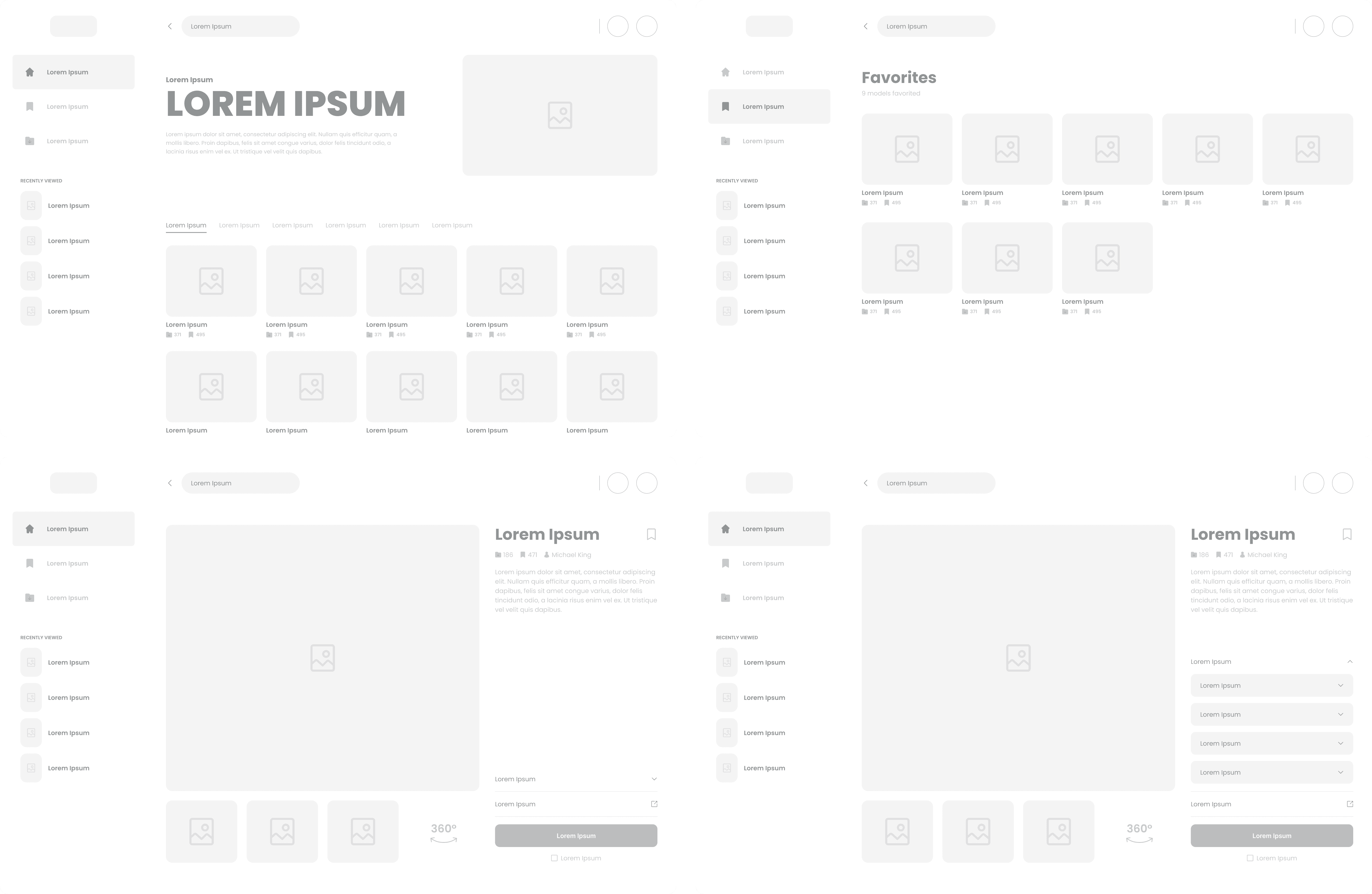 Mid-fidelity wireframes define structure, flow, and key interactions, refining navigation and hierarchy before high-fidelity design.