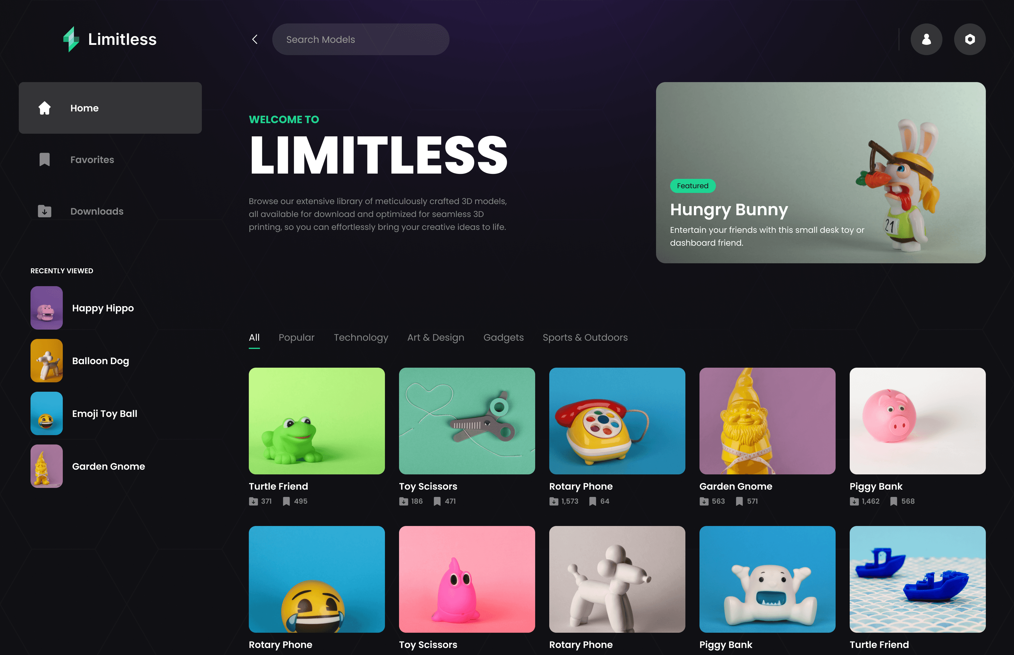 To solve this, I designed a powerful yet easy-to-use platform where users can seamlessly view, customize, and download 3D models optimized for their specific printer. With intuitive editing tools, smart compatibility features, and a user-friendly interface, Limitless removes the guesswork from 3D printing. Users can resize, adjust, and format models with precision, ensuring every print meets their exact specifications. By making the customization process more accessible, the platform empowers both hobbyists and professionals to bring their creative ideas to life effortlessly. Now, whether a user is a beginner or an expert, they can fine-tune their designs with confidence and create high-quality prints without hassle.