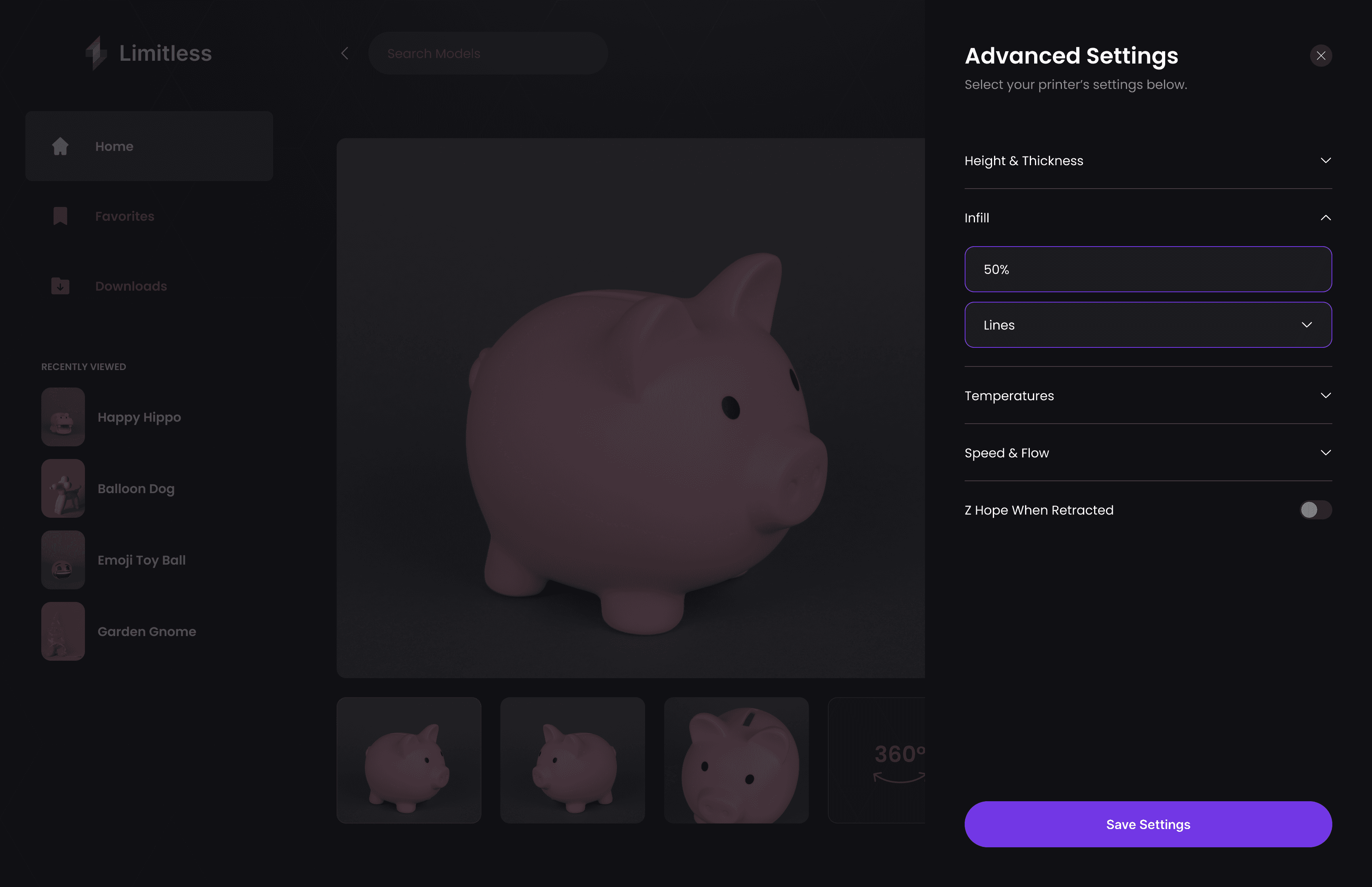 3D printing enthusiasts needed a better way to find, customize, and download models tailored to their specific printers, but most platforms lacked flexibility. Many users struggled with resizing and reformatting files, leading to printing errors and wasted materials. Without an intuitive system for personalizing models, both beginners and experienced makers faced unnecessary roadblocks. The process of preparing files for printing was often frustrating, requiring manual adjustments and troubleshooting that slowed down creativity. Limitless needed a platform that made 3D printing more accessible, allowing users to easily edit and optimize models for their unique setup while ensuring compatibility across different printer brands and formats.