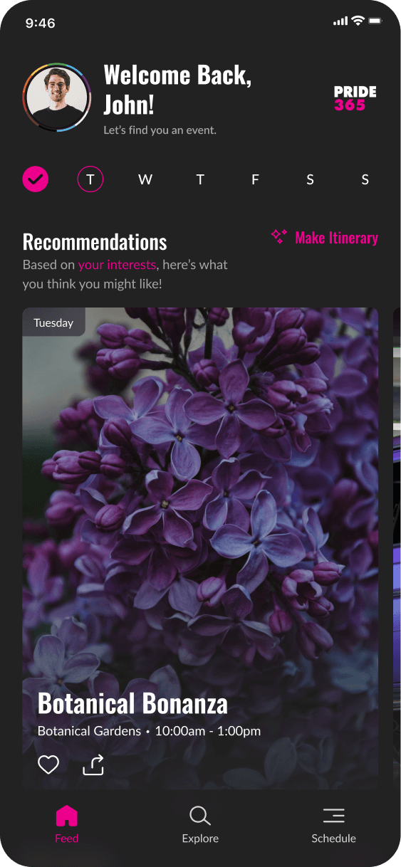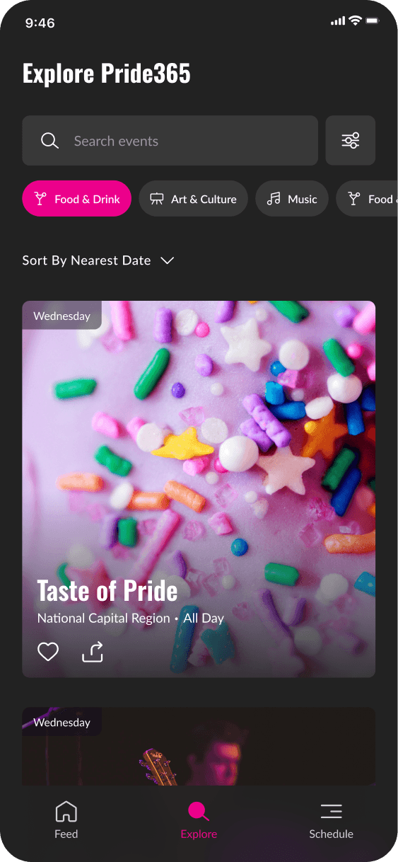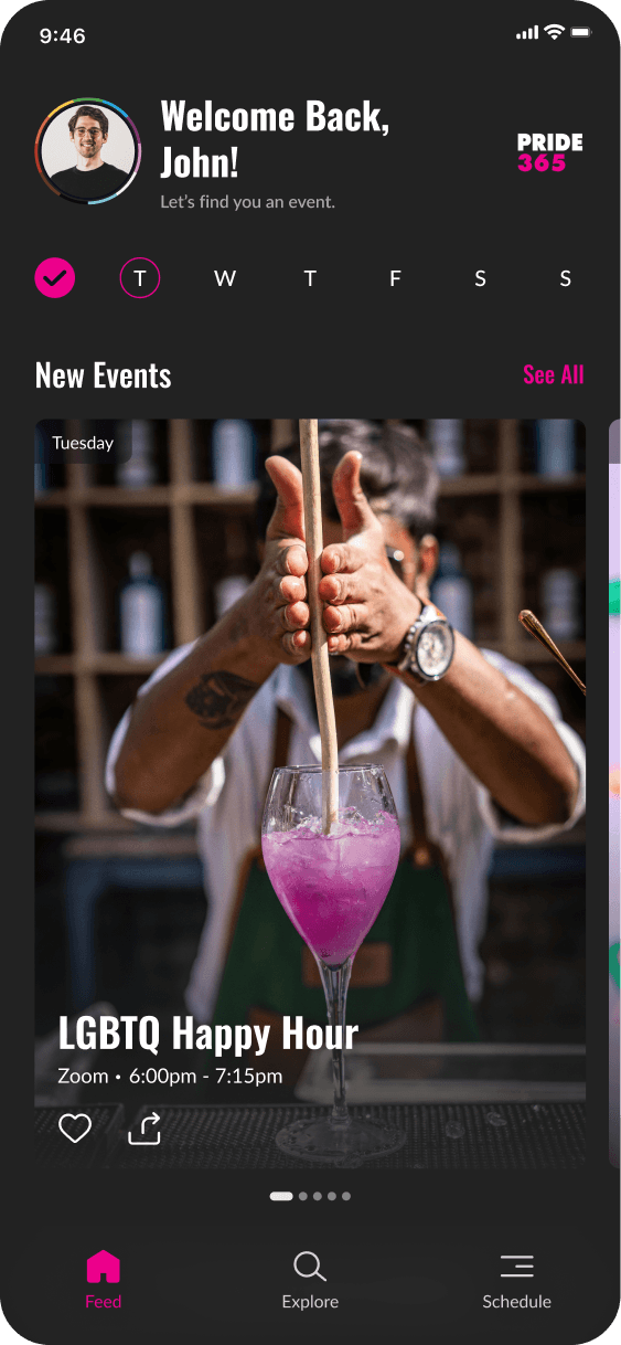 Pride365 had an incredible mission—keeping the spirit of Pride alive all year long—but their app wasn’t making it easy for people to stay connected. Users struggled to find events in their area, access important community resources, and engage with LGBTQ+ initiatives in a way that felt seamless. The outdated design made navigation frustrating, and without a more intuitive platform, many people weren’t getting the full Pride365 experience. They needed a refreshed app that was easy to use, inviting, and made staying involved effortless.